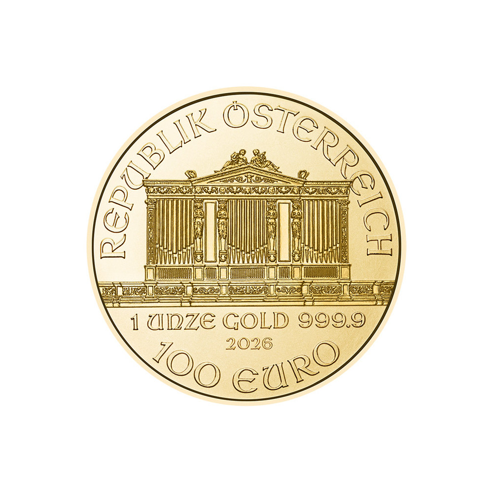 Wienerfilharmonikerne har fått navnet sitt fra det berømte østerrikske orkesteret, som er et av de beste i verden. På forsiden av gullmynten er det store orgelet i Wiener Musikverein avbildet. Under orgelet er det stemplet vekt på 1 unse, finhetsgrad 999,9, årstall og pålydende verdi på 100 euro. Over er inskripsjonen "REPUPLIK ÖSTERREICH" stemplet. På baksiden er noen av musikkinstrumentene til filharmonikerne avbildet, og på den øvre kanten kan du se navnet på orkesteret og gullmynten "WIENER PHILHAMRONIKER". I likhet med de ovennevnte gullmyntene er Wiener Philharmoniker tilgjengelig i størrelsene 1/2 oz, 1/4 oz, 1/10 oz og 1/25 oz.