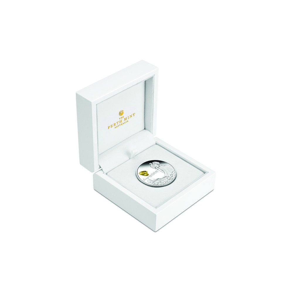 Denne vakre sølvmynten er nok en perle fra "The Perth Mint Australia". Mynten er ny i 2026 og passer til å ønske det perfekte ekteskap.